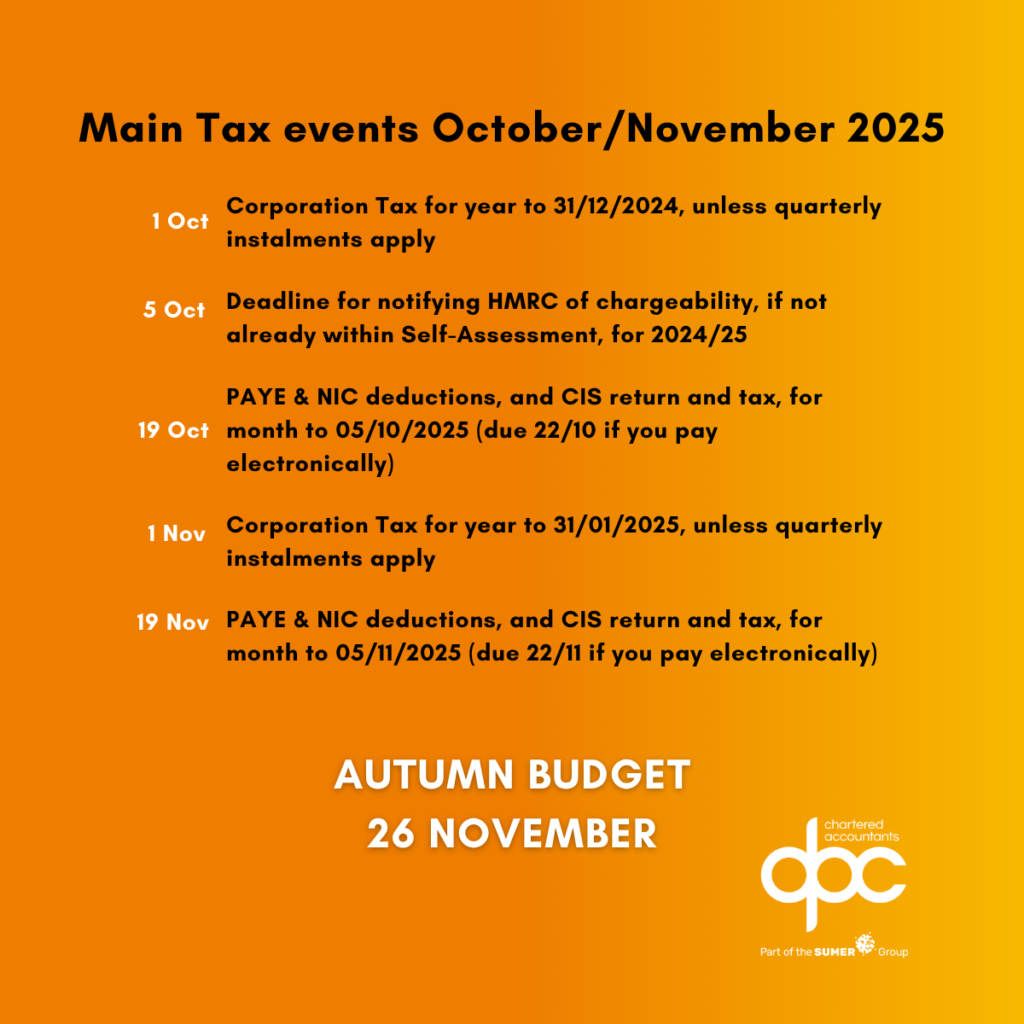 You are here: DPC Accountants » Latest News » October 2025 Tax News